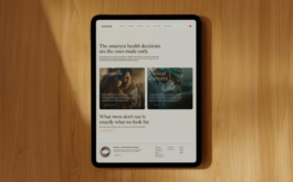 The visual identity reflects this balance between innovation and reassurance. A warm, skin-toned color palette—soft beiges, muted blushes, and blue-grey accents—creates a calm, trustworthy, and high-end feel. The mark is inspired by the Möbius strip, a continuous form that blurs the boundary between inside and outside, symbolizing interconnectedness, transformation, and Radence’s holistic view of health. A kinetic graphic system expresses movement and progress, directly referencing the advanced technology behind the platform while remaining flexible across layouts and messaging. Photography art direction completes the system through an art direction rooted in honest moments of life, shaped by a truffle-toned warmth and soft slate-blue hues, reinforcing authenticity, care, and quiet confidence.